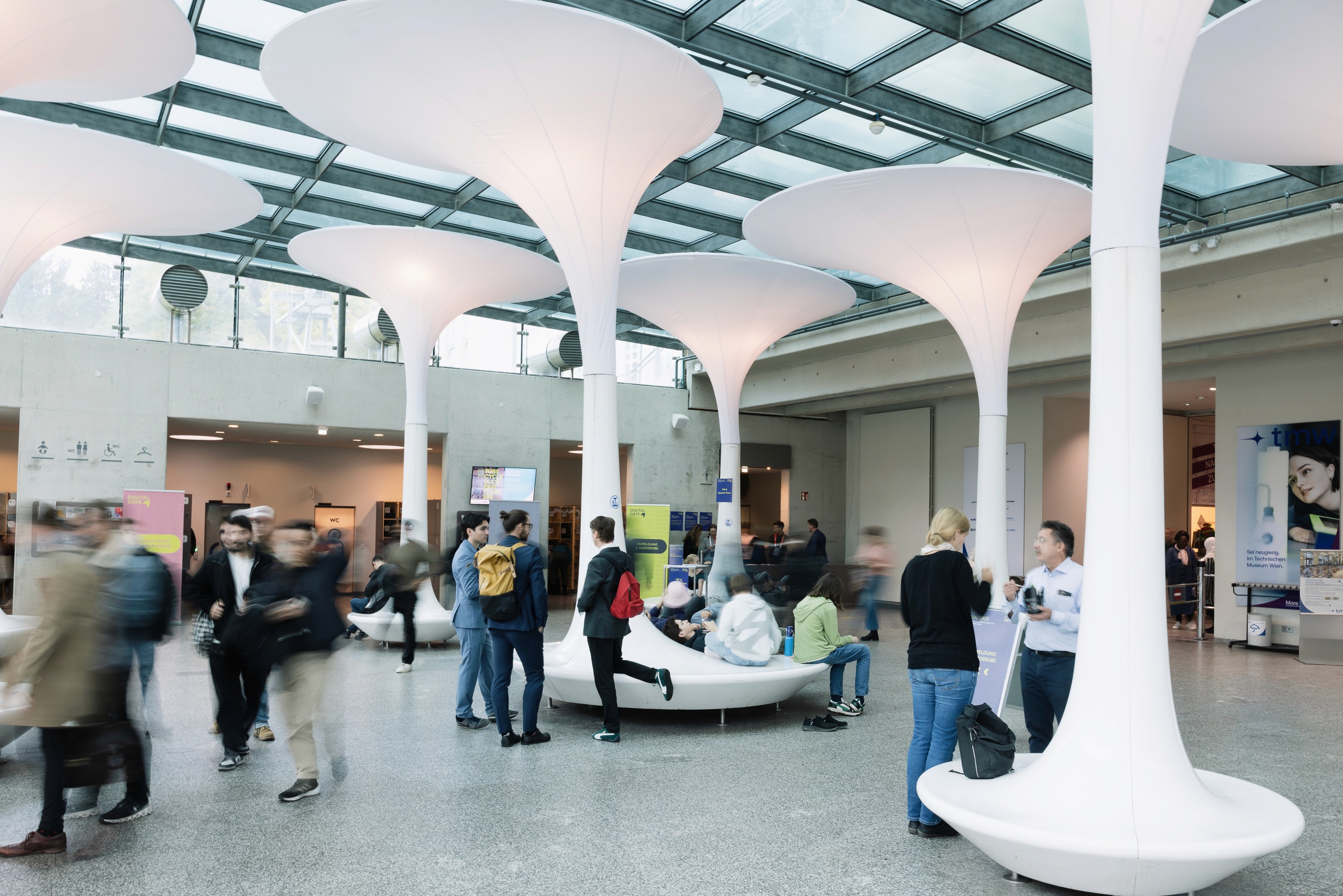 The visual identity gave the event a strong and memorable presence, reinforcing Vienna’s role as a pioneer in the european digitalisation. Through bold event and exhibition design, the experience resonated with both young and older audiences, inviting participation, discovery, and dialogue. The setting served not only as a public celebration, but also as a platform to strengthen connections between business and science, raising awareness of their shared role in shaping a digital future.